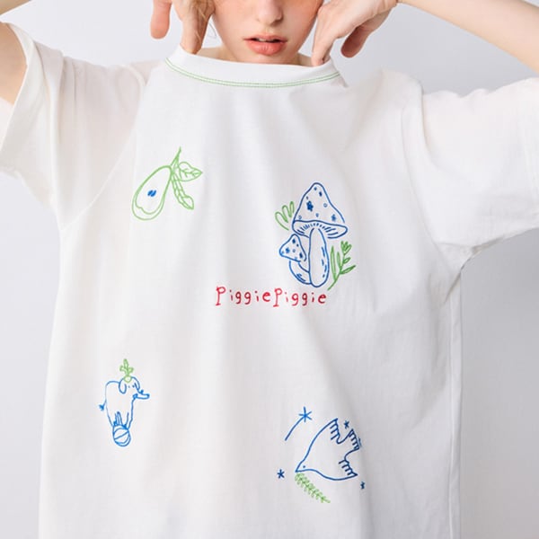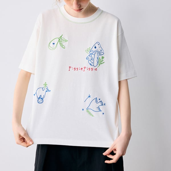 動植物の可愛らしい刺繍が施された、ラウンドネックTシャツ。シンプルなカラーに、愛らしいイラストが映える一枚は、どんなコーディネートにもぴったりな万能アイテムです。カジュアルな普段着にはもちろん、ちょっとしたお出かけシーンでも活躍します。
