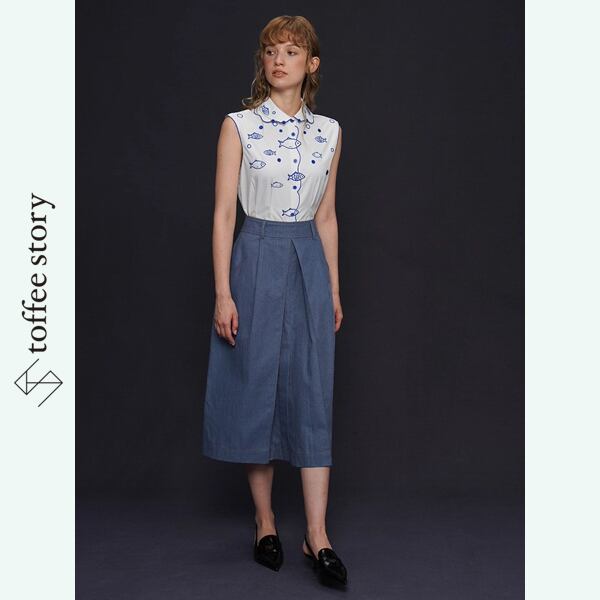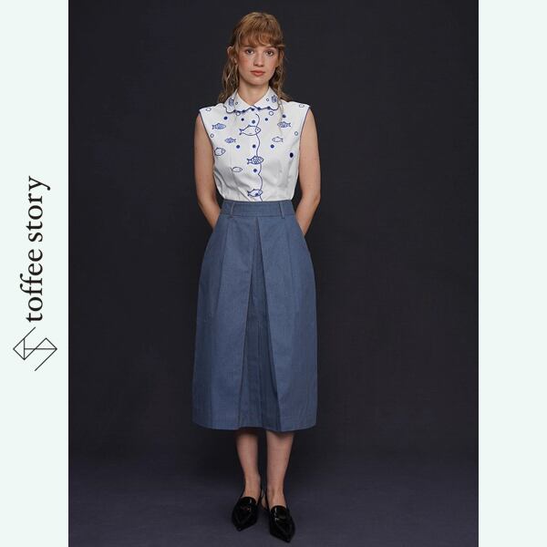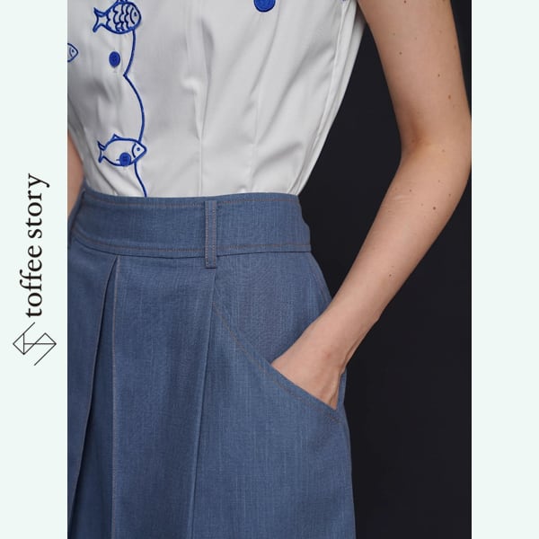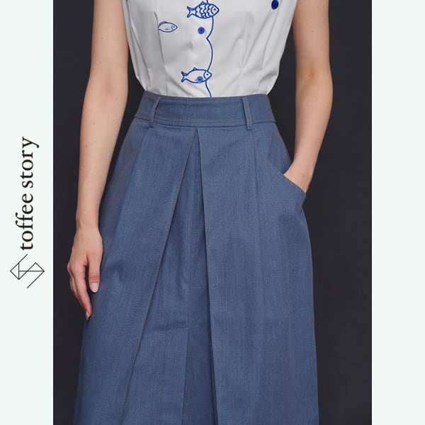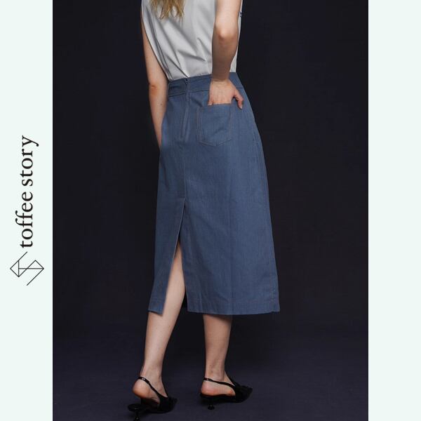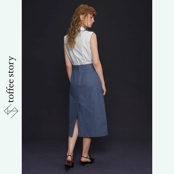 深みのあるブルーが魅力のデニムロングスカート。上品なタックデザインとバックスリットが、歩くたびにしなやかな動きを生み出します。シンプルながらも立体感のあるシルエットは、カジュアルにもきれいめにも合わせやすく大人の女性にぴったり。オールシーズン着回し可能で、同系色のトップスと合わせればセットアップ風のスタイルも楽しめます。ベーシックに少しの個性を添えた、日常に詩を紡ぐ一枚です。