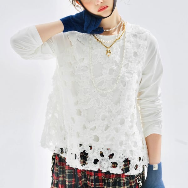 【2color】花レースが踊る重ね着ロンT 《i0719》
