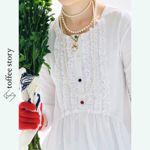 カラフルボタンのホワイトフリルトップス《i0720》