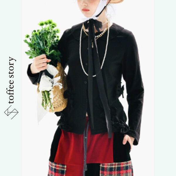【2color】リボンで遊ぶドールカラーカーディガン《i0721》