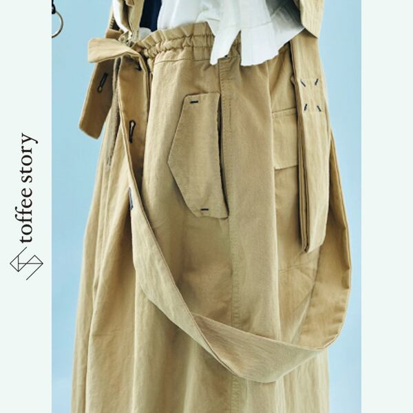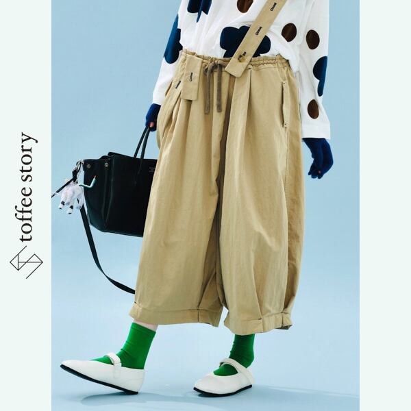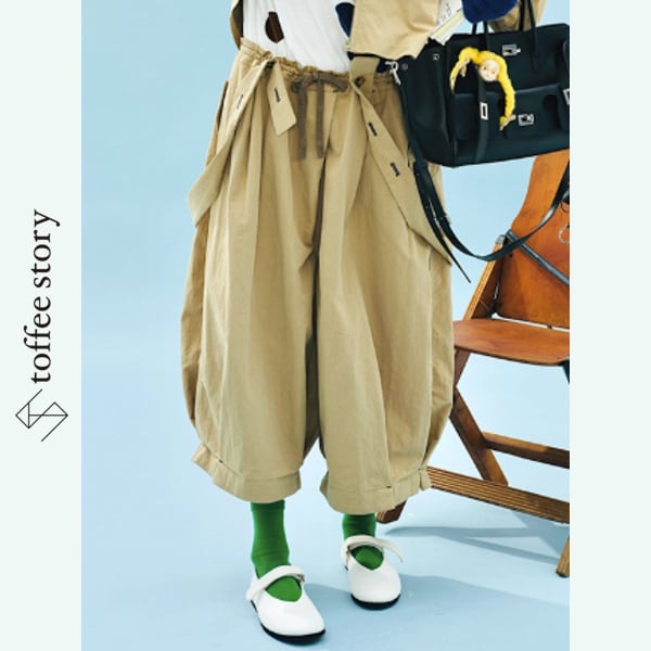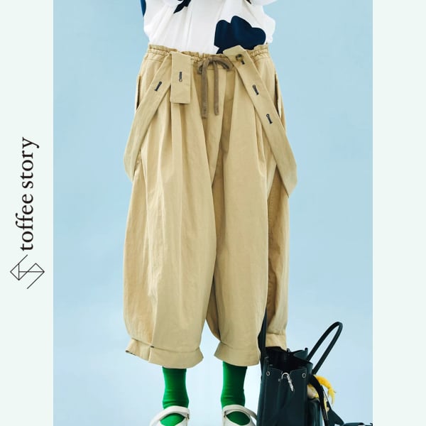 ふんわり膨らむバルーンシルエットが目を惹く、imakokoniのカーキパンツ。ゆったりとしたフォルムに、ユニークなベルト&タブのディテールをプラスし、ストリート感とカジュアル感を絶妙にミックスしました。軽やかなコットンツイル素材で、動きやすさと快適さも◎。シンプルなトップスと合わせても存在感たっぷりで、普段使いからお出かけまで幅広く活躍します。遊び心のあるスタイリングで、日常にちょっとしたアートを取り入れて。