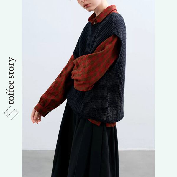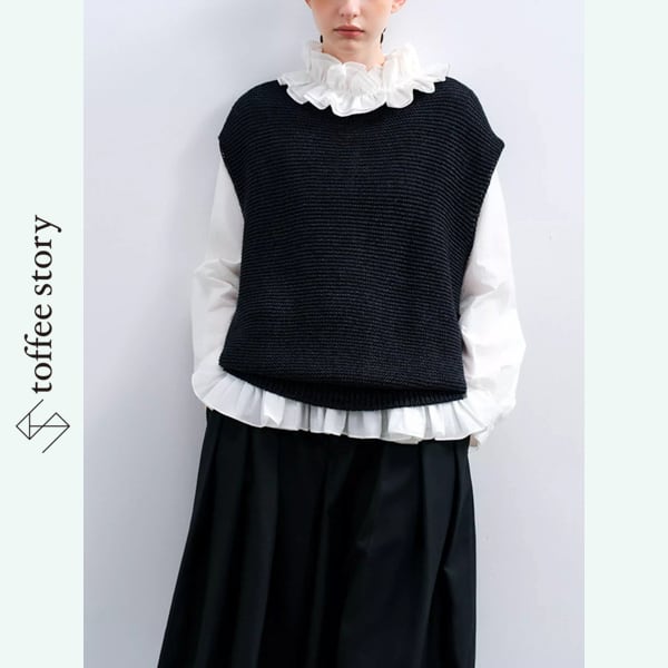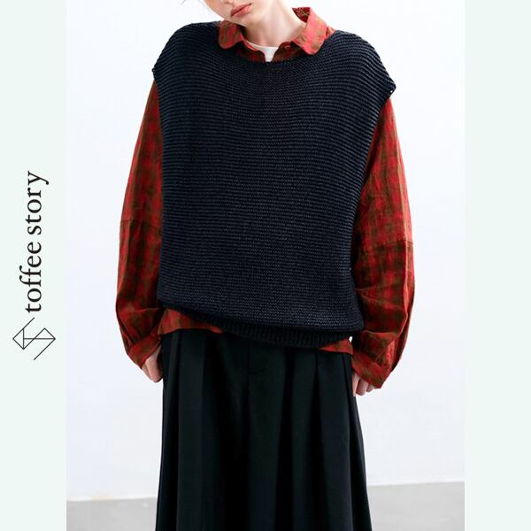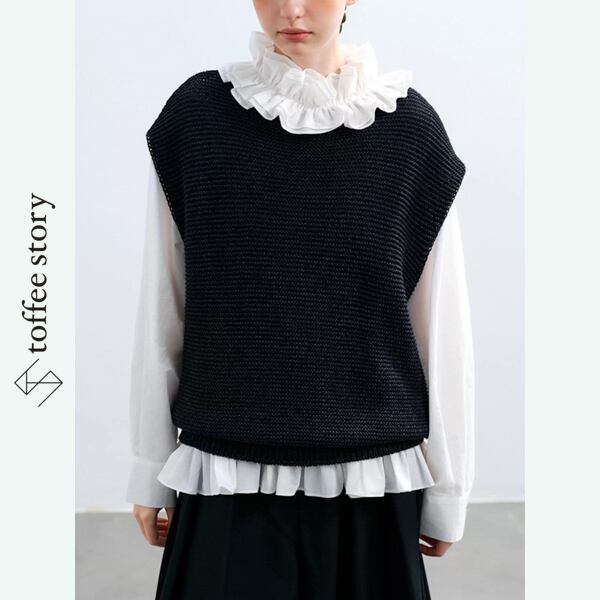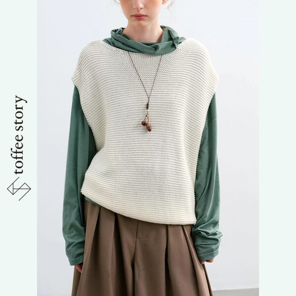 軽やかな素材感で、肌寒さが始まる季節にぴったりなベストが登場。厚すぎず薄すぎない絶妙なローゲージ編みが、重ね着のシルエットに立体感をプラスしてくれます。