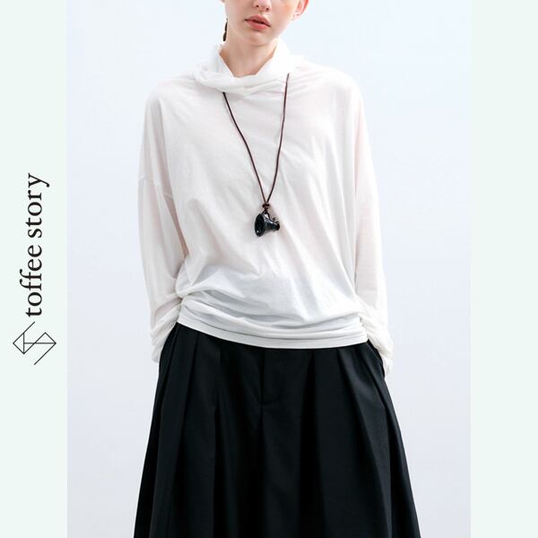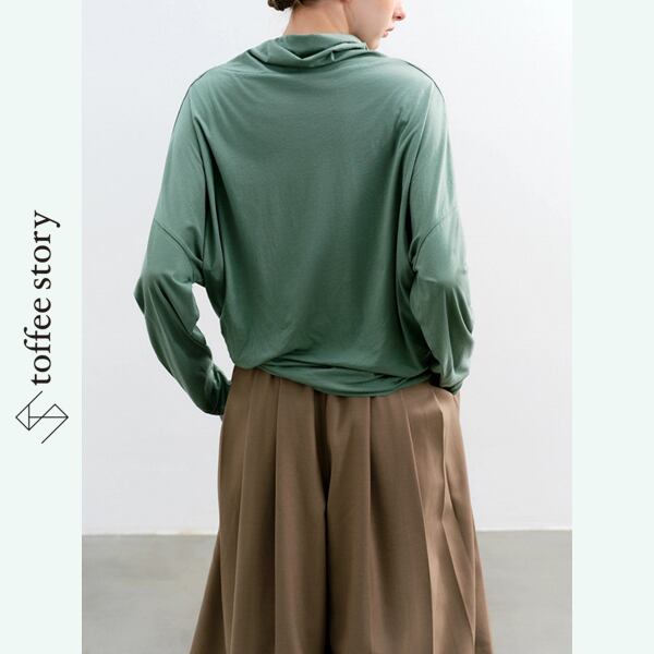 ウエストはほんのり絞り、ゆるやかなドレープが女性らしいラインを引き立てます。