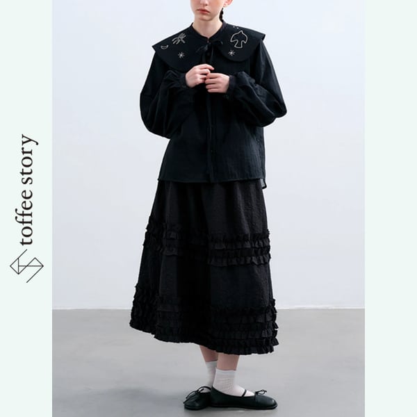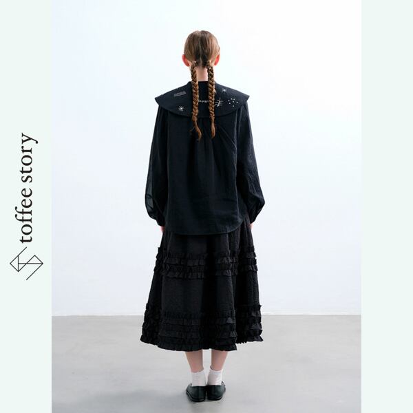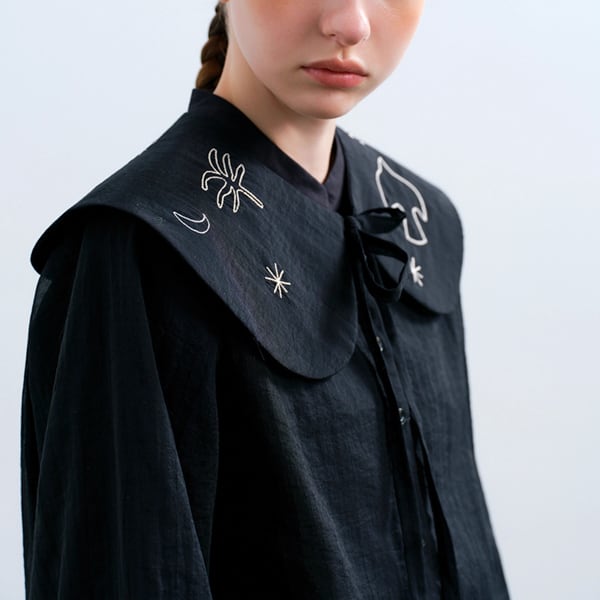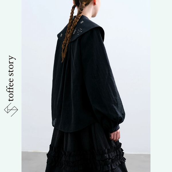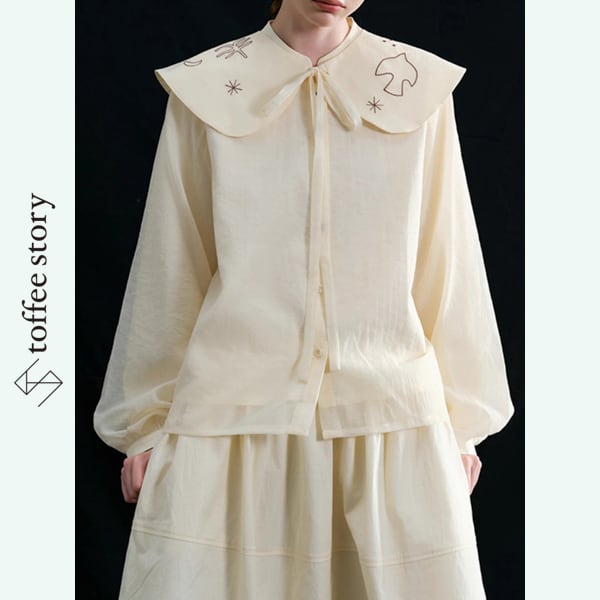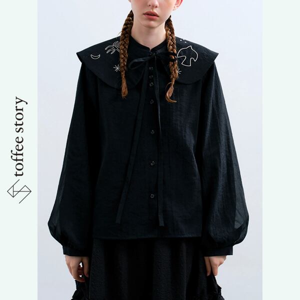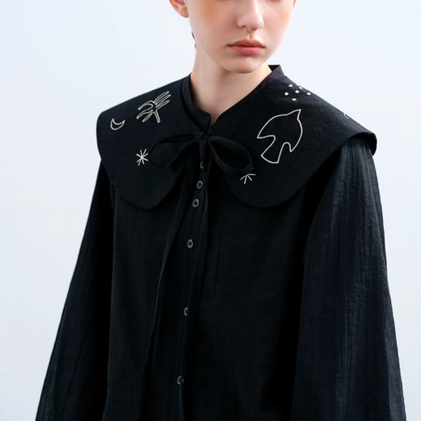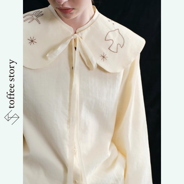【2color】空想をまとう、刺繍襟と秘密のシルエットシャツ 《P0250》