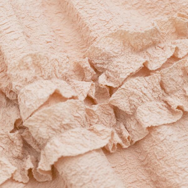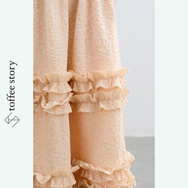 生地そのものの立体感に加え、三段のフリルが歩みに揺れて印象を深めます。