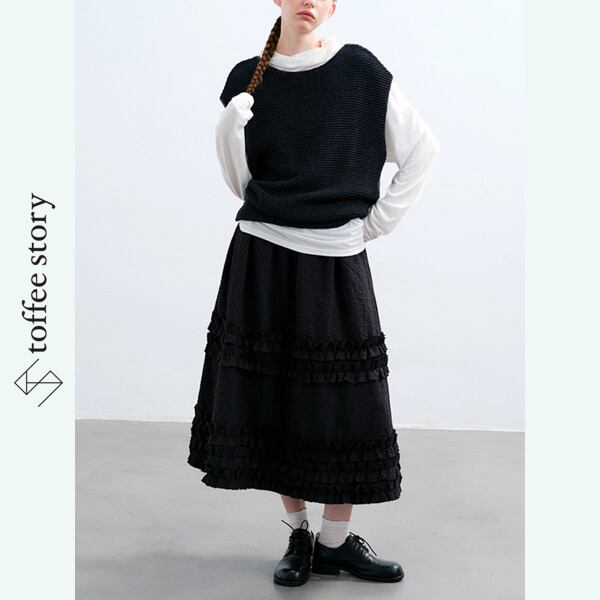 【2color】質感と陰影をまとうフリルスカート 《P0253》