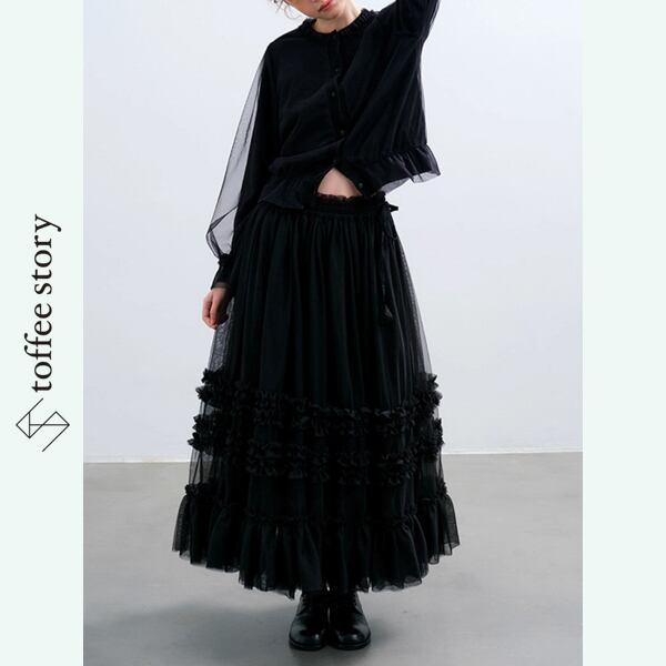 【2color】チュールが揺れる静かな物語カーディガン 《P0254》