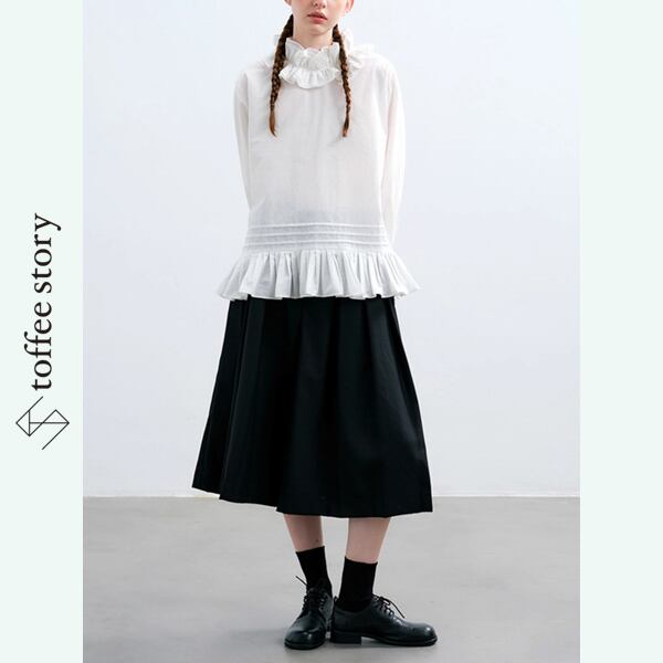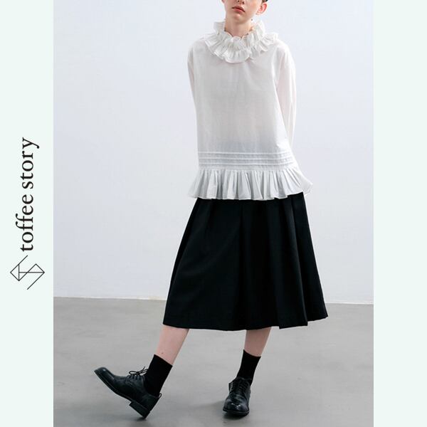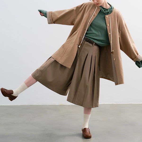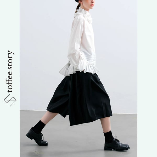 丁寧に入れられたタックが、動くたびにしなやかに揺れ、静かな存在感を放ちます。