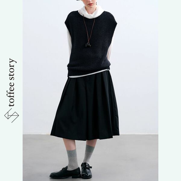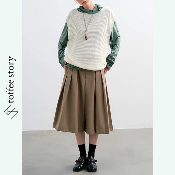 【2color】知性をまとう、ウールプリーツキュロット 《P0255》