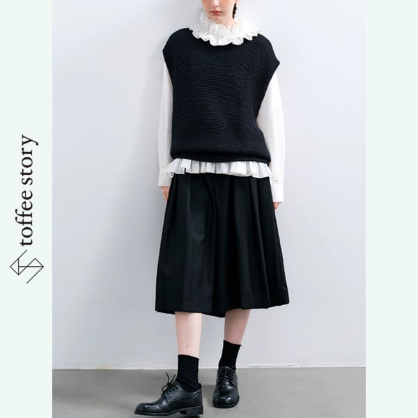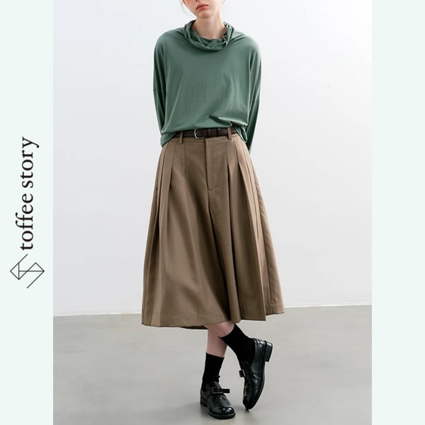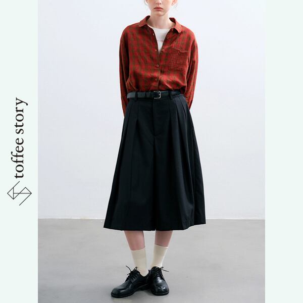 上質なウール混生地を使用した、シルエット美しいプリーツキュロット。スカートのような柔らかな印象と、パンツの機能性を併せ持つ一枚です。