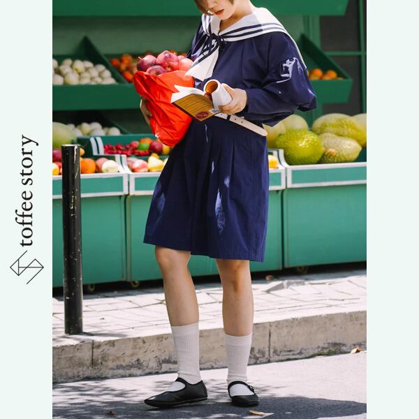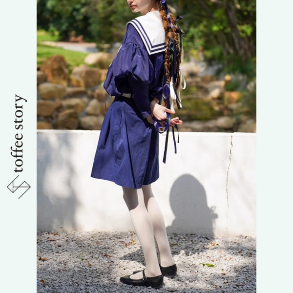陽射しにきらめく港町を歩くような気分を纏える、レトロなセーラーブラウス。深いネイビーに映える白のセーラーカラーとリボンが、クラシカルなマリンムードを引き立てます。ふんわり膨らむバルーンスリーブが、風をはらんで優雅なシルエットを描き、動くたびに物語の一場面のよう。軽やかな素材感は、春夏はデニムやスカートに、秋はニットベストやカーディガンと重ねて。季節を越えて、あなたを小さな航海へと誘う一着です。