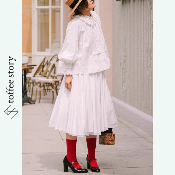 カフェの窓辺でグラスを傾ける午後——そんな情景が似合う、ホワイトカラーのレースブラウス。襟元と袖口にあしらわれた繊細なレース、胸元に走るピンタックと小さなボタンが、クラシカルな空気を纏わせます。ゆったりとしたシルエットはリラックス感がありつつも、上品な印象を演出。デニムと合わせれば抜け感のあるカジュアルに、スカートとならレトロフェミニンに。日常のひとときも、まるで映画のワンシーンのように彩る一着です。