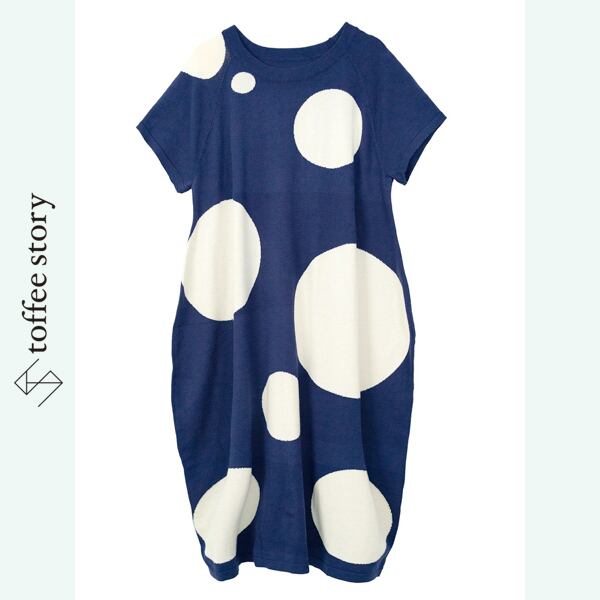 大胆な大小のドットが躍るように配された、imakokoniらしい遊び心満点のワンピース