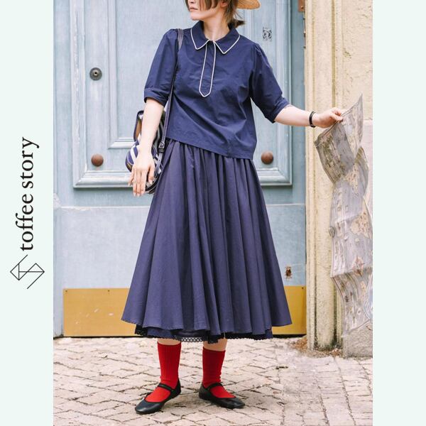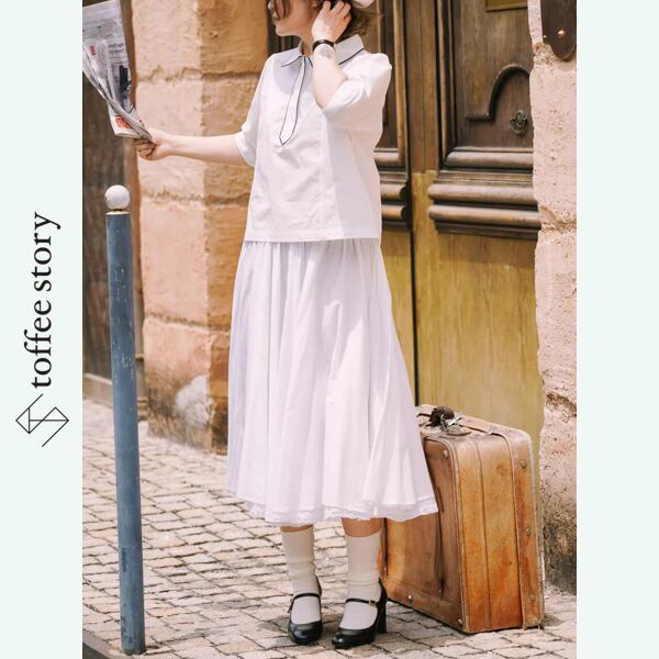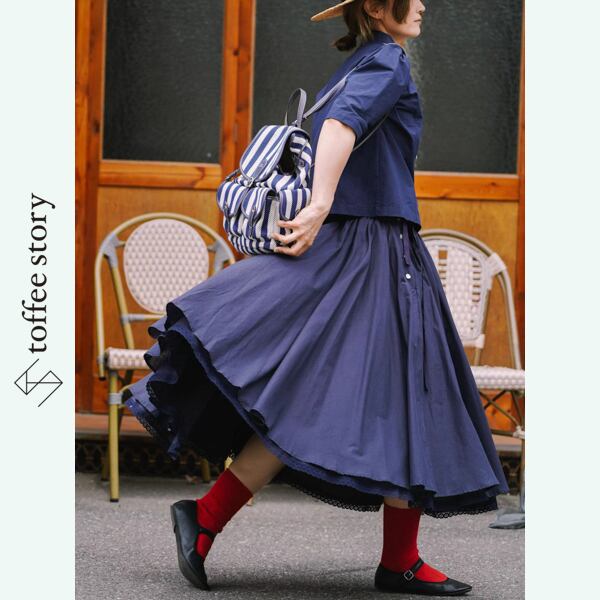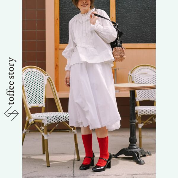 WOKEREKERが紡ぐ、レトロモダンな物語。裾にそっと忍ばせた繊細なレースが、歩くたびに揺れ、まるで海外映画のワンシーンのような余韻を残します。軽やかなコットン素材は肌に優しく、石畳の街角やカフェテラスでの時間をより美しく彩ります。ホワイトは純真な午後を、ネイビーブルーは落ち着いた大人の旅情を演出。ソックスやパンプスとの組み合わせで、日常にも小さな映画のような瞬間をお届けします。