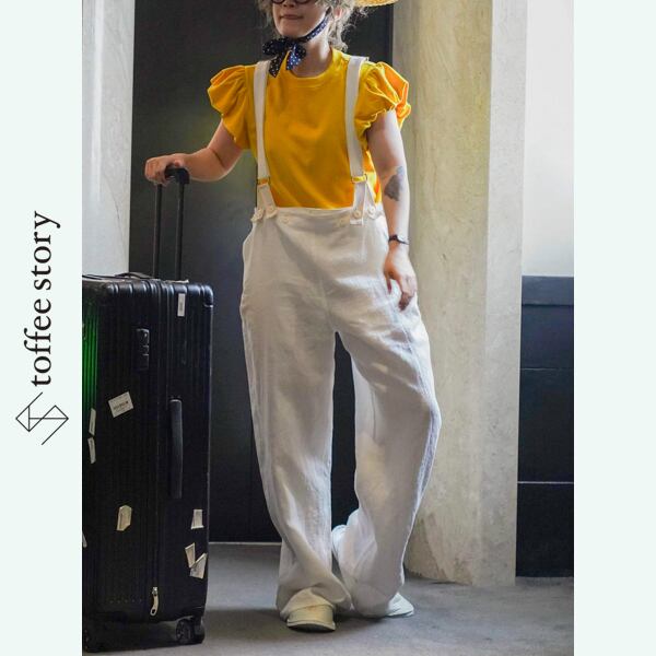 軽やかなリネン生地が風をはらみ、白いキャンバスのようにどんな色とも調和するオーバーオール。ゆったりとしたシルエットは、映画のワンシーンのような無邪気さをまといます。シャツと合わせてクラシックに、カラートップスでポップに。休日のカフェや海辺の散歩に似合う、自由とやさしさを運ぶ一着です。