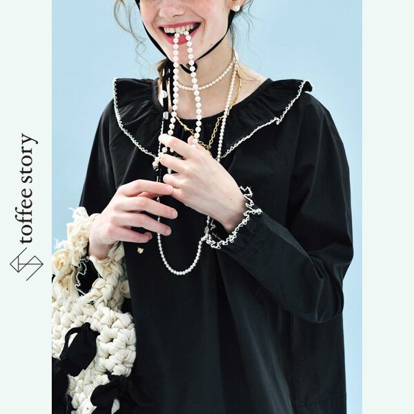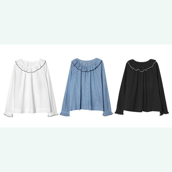 首元のフリルをチェーンステッチで縁取った、ちょっぴりユニークなimakokoniの新作トップス
