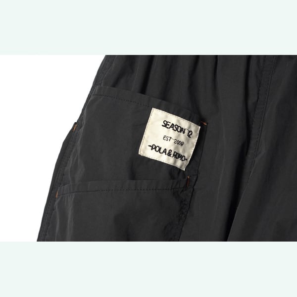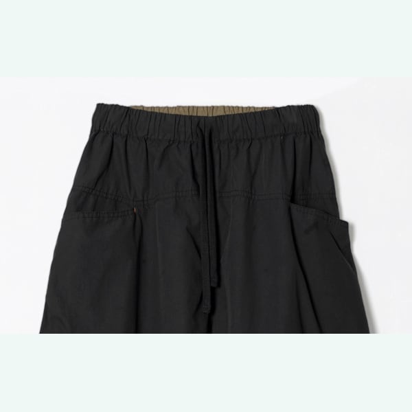 後ろに配された大きめポケットとタグが視線を集める、imakokoniのブラックパンツ
