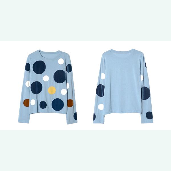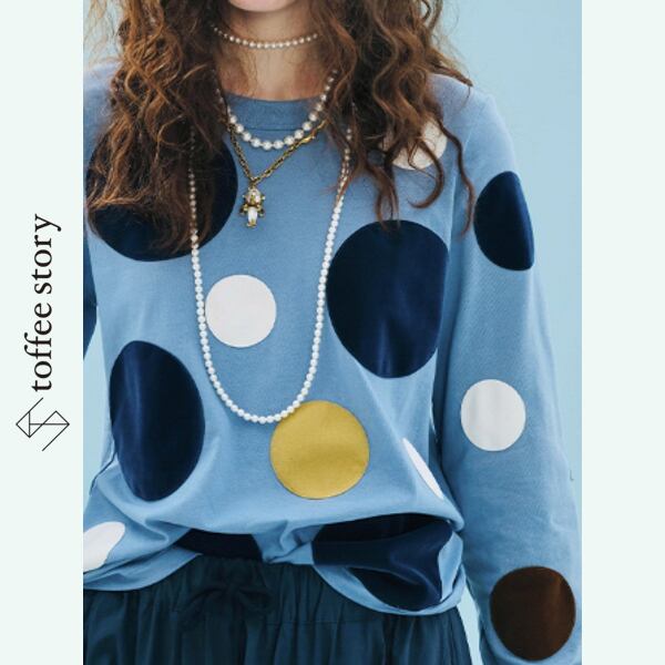 爽やかなブルーに大きなドットを散りばめた遊び心あふれるカットソー