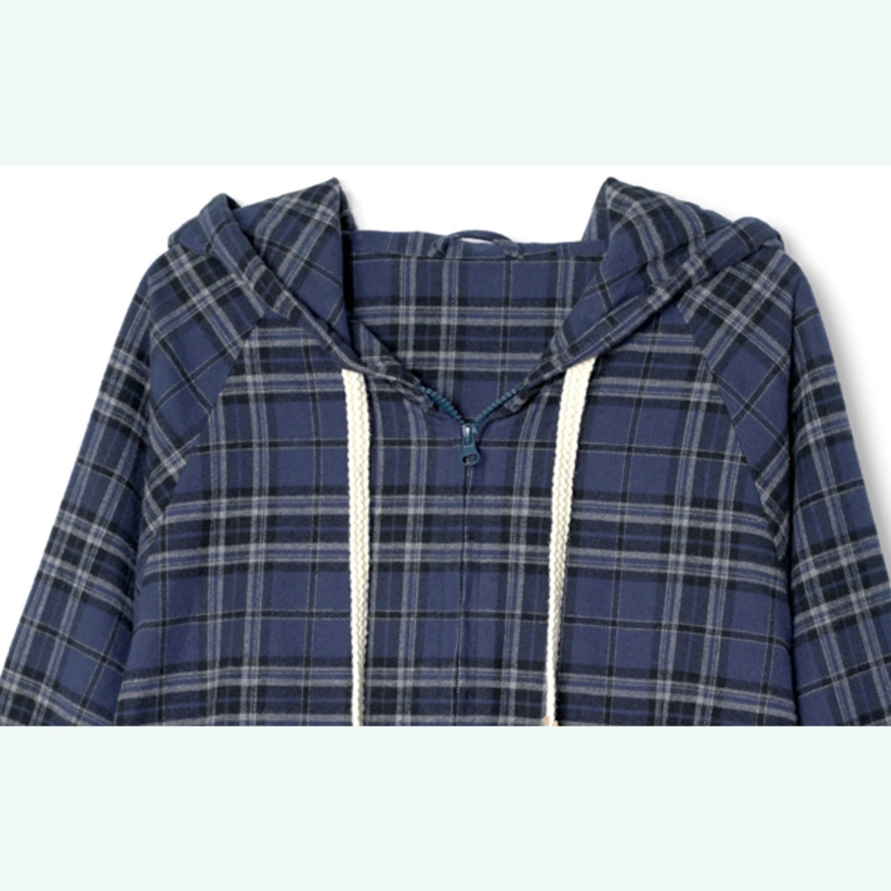 ネイビーチェックの刺繍入りフーディー 《i0761》