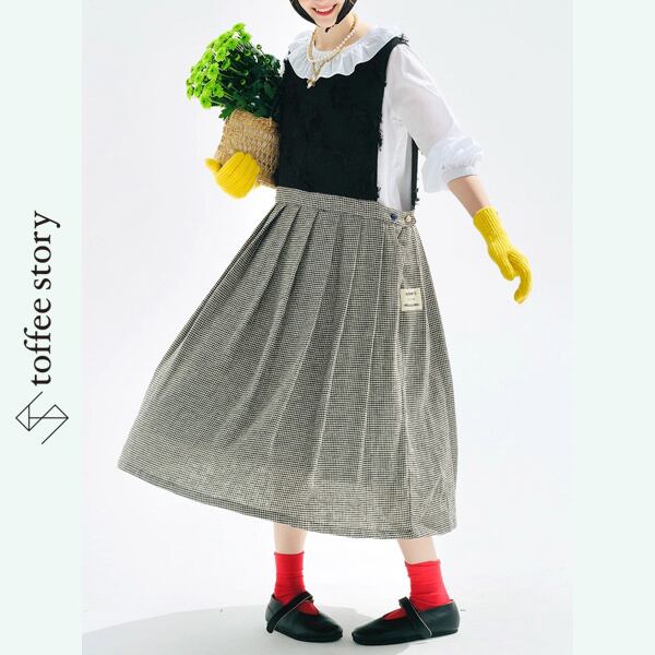 クラシックチェック柄プリーツミディワンピース 《i0762》