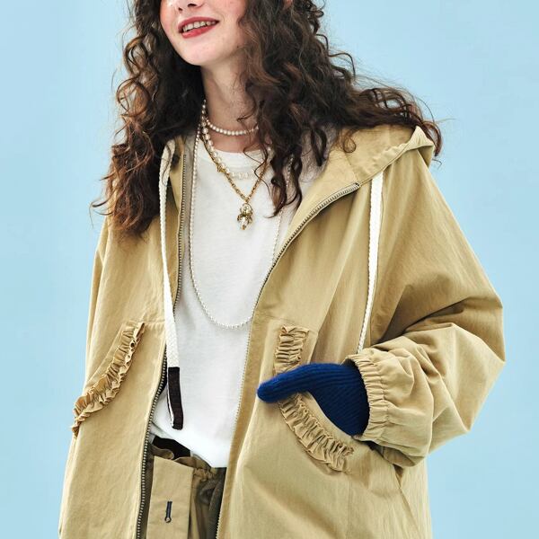 ゆるりと遊ぶフリルポケットのフーディー 《i0763》