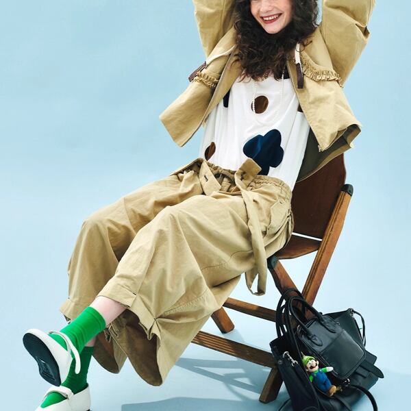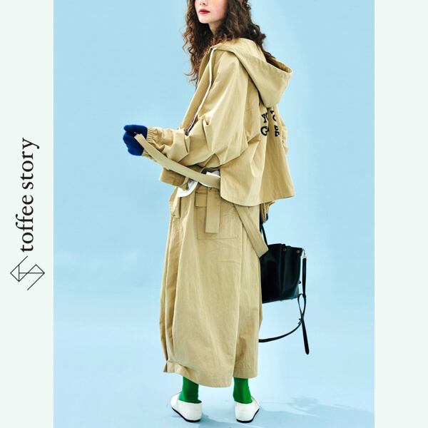 ストリートのラフさにフェミニンな遊び心をプラスした imakokoni のフーディー。フロントのフリルポケットが印象的で、背面には「TODAY IS GOING TO BE YOUR GLORIOUS DAY」のメッセージをオン。軽やかなカーキカラーがどんなコーデにも馴染み、ゆったりとしたシルエットが抜け感を演出します。デイリーに寄り添いながらアートのような個性を放つ一着。日常をポジティブに彩るフーディーです。