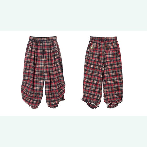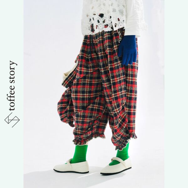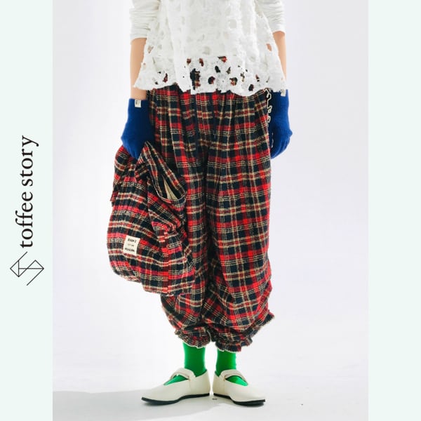 赤チェックと遊び心のバルーンパンツ 《i0764》