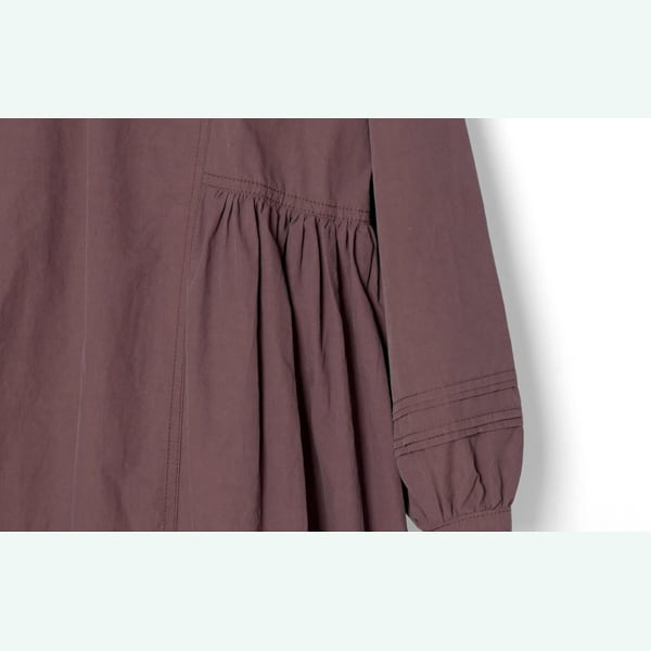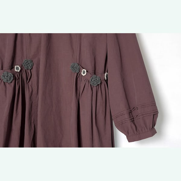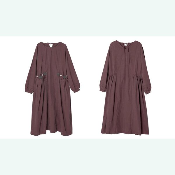 両サイドへあしらった花モチーフ刺繍がアクセントになった imakokoni のワンピース。ゆったりとしたシルエットでリラクシーな着心地ながら、切り替えとギャザーで立体感を生み出し、動くたびに美しいドレープを描きます。袖口の繊細なステッチも、職人の丁寧な手仕事を感じさせるポイント。カジュアルからストリートまで幅広く活躍する一枚です。