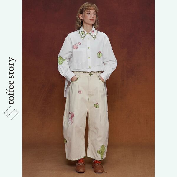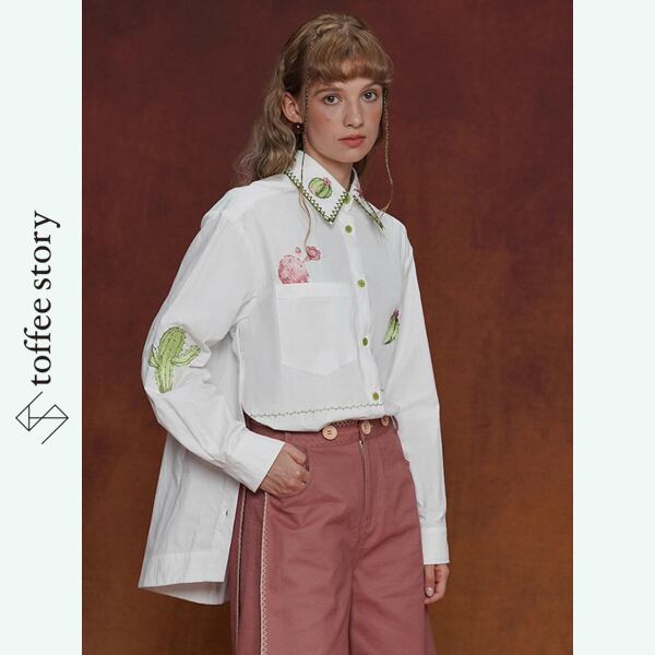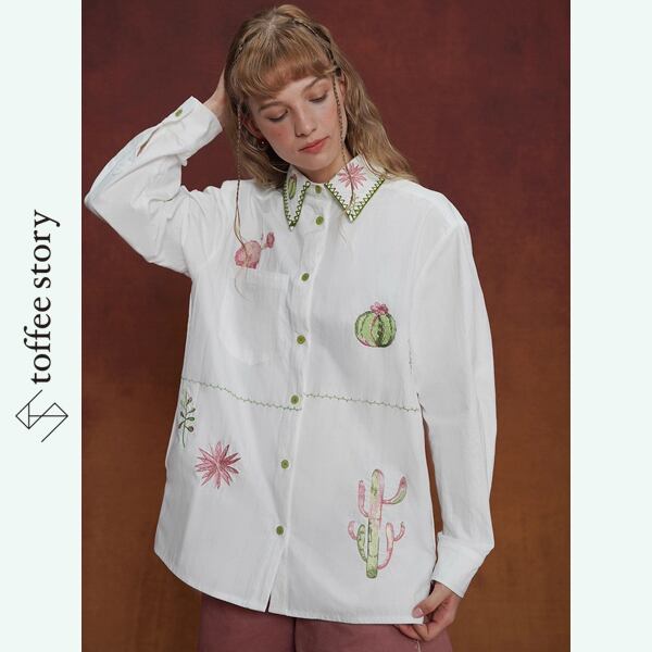 砂漠のオアシスサボテン刺繍ブラウス 《C0245》