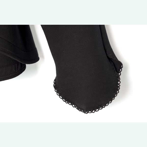 シンプルでありながら、裾の個性的なカットが目を惹くブラックトップス