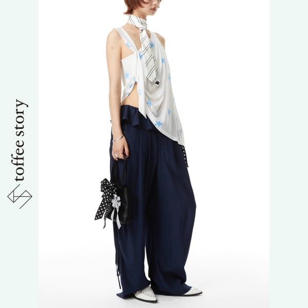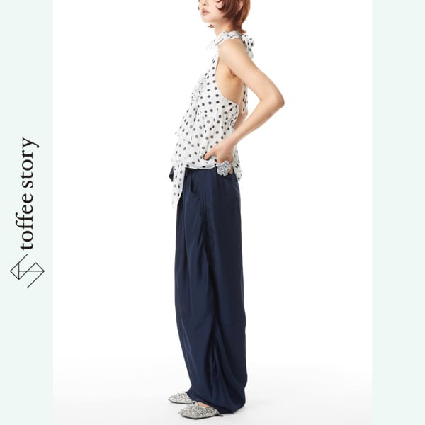 大胆なワイドシルエットは足取りに余白を生み、日常に非日常のリズムを刻むデザイン