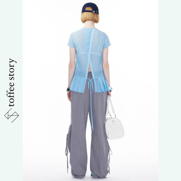 ワイドに広がるレッグラインは都会の余白を描くように軽やかで、無彩色の静けさと実験的なムードが交差します