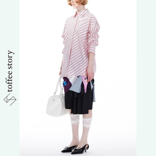 ストライプの錯覚/ピンクオーバーシャツ 《B0012》