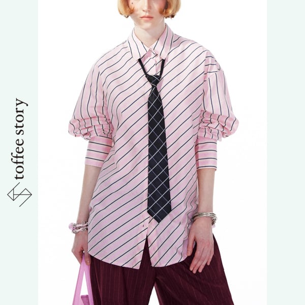 ボーイッシュにネクタイを合わせても、ラフに羽織ってもスタイルが決まる、感性を解き放つピンクシャツです