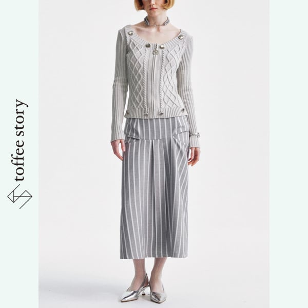 シンプルなグレーに、さりげなく光るディテールがポップな遊び心をプラスしてくれる、主役級カーディガンです