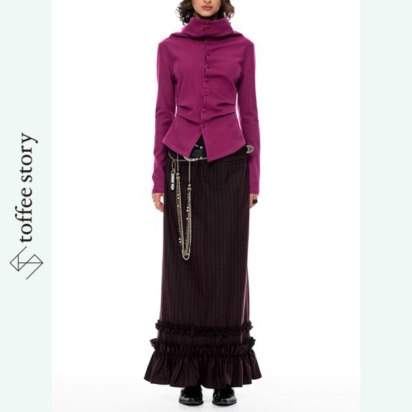モードラズベリー/彫刻的ドレープトップス 《B0029》