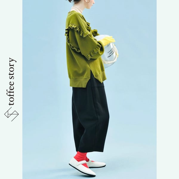 袖に重ねたフリルが印象的な、モード感漂うプルオーバートップス。