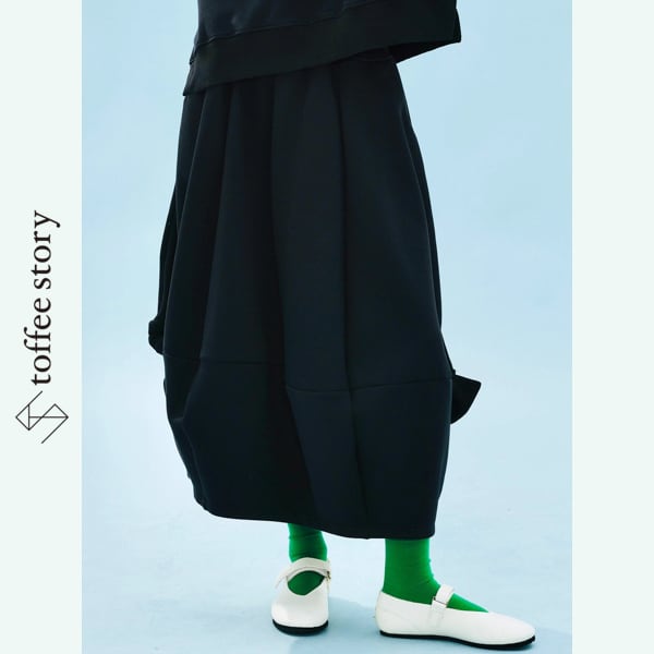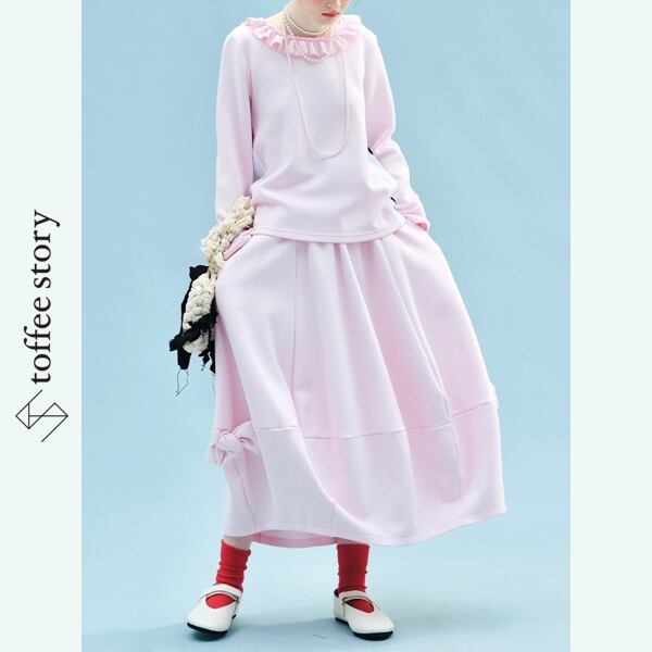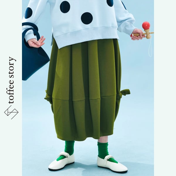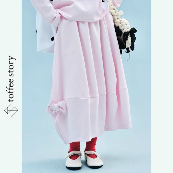 ふんわりと広がるシルエットに、裾のリボンが軽やかなリズムを添えるAラインスカート