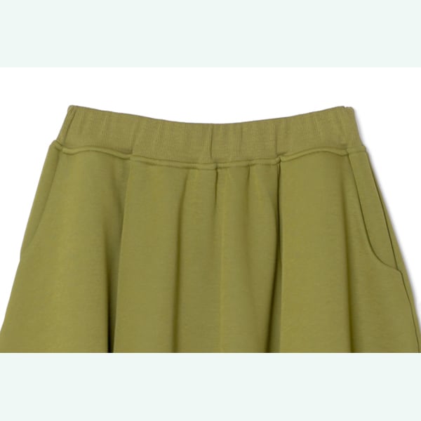 ウエストはゴム仕様でリラックスした着心地ながら、動くたびに揺れるドレープが装いを華やかに