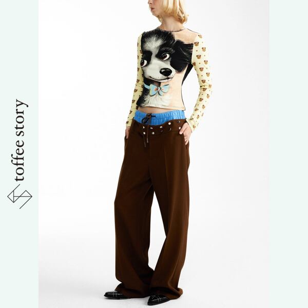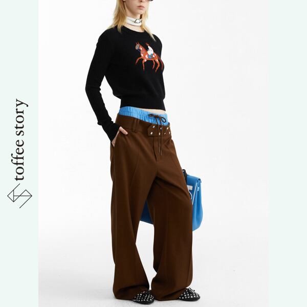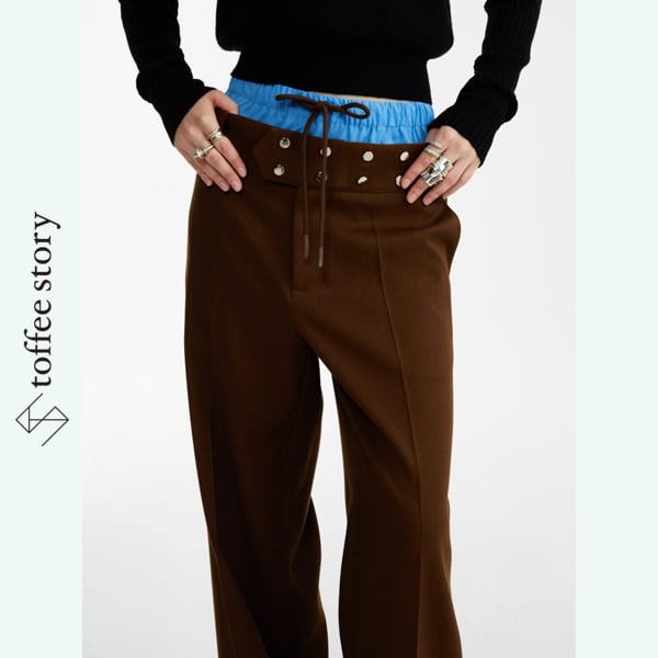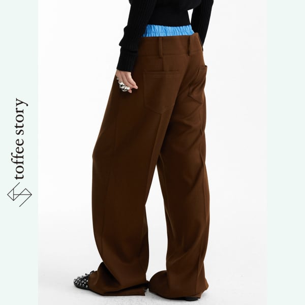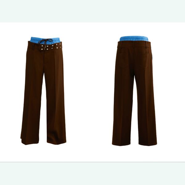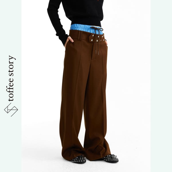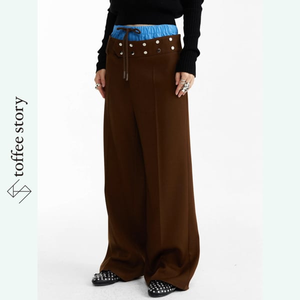 ブルーコントラストが挑発する、ブラウンワイドトラウザー 《B0044》