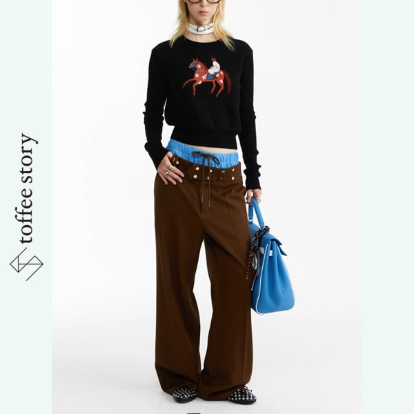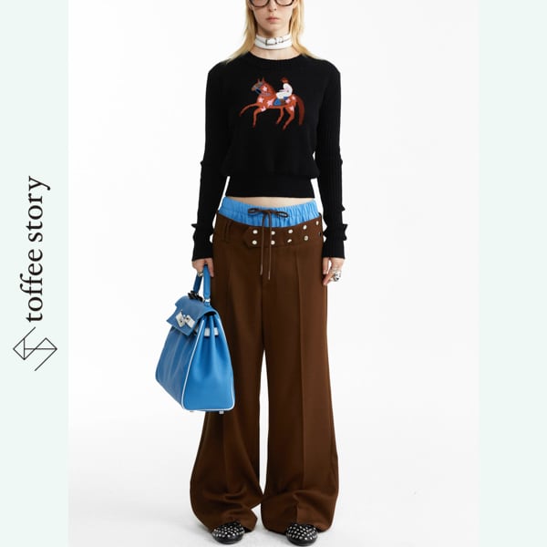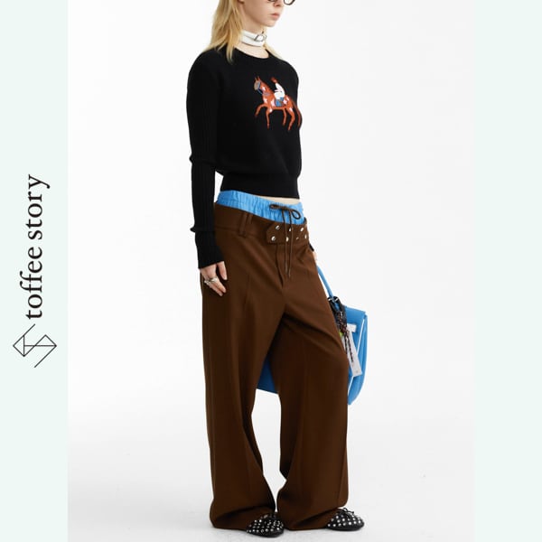 モノトーンニットで引き締めれば洗練されたモードに、あえて鮮やかなトップスを合わせれば挑発的なスタイルに。日常をアートに変えるパンツです。