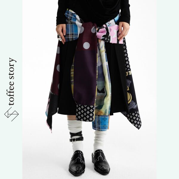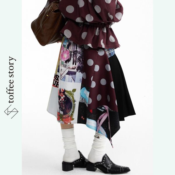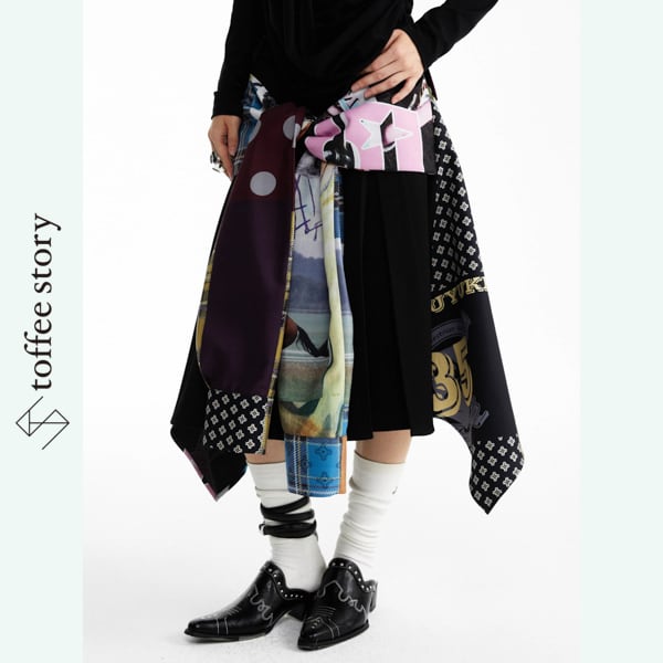 奔放なコラージュが踊るアートスカート 《B0046》
