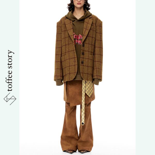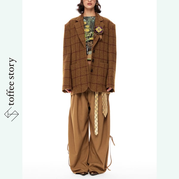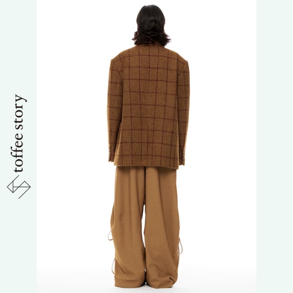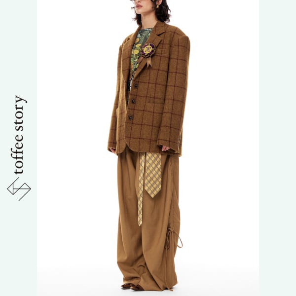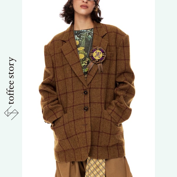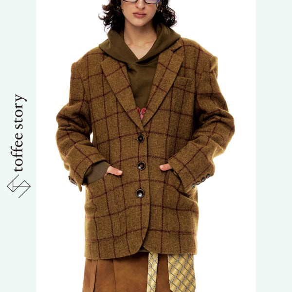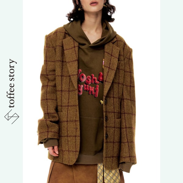 深みのあるブラウンに大きなグリッドを走らせた、存在感あふれるウールジャケット