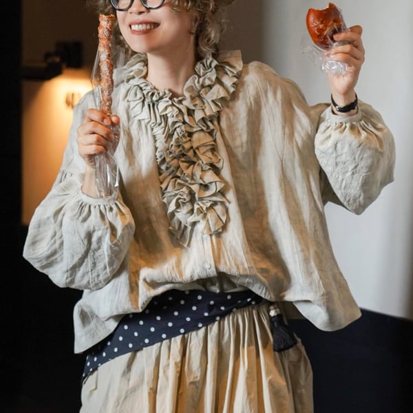 リネンフリルと陽だまりのバルーン袖シャツ 《W0190》