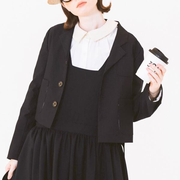 シンプルながらも一つ掛けのボタンやポケットの配置に遊び心が宿り、シャツやワンピースと合わせればレトロモダンな雰囲気に。日常の装いをドラマティックに変える逸品です。