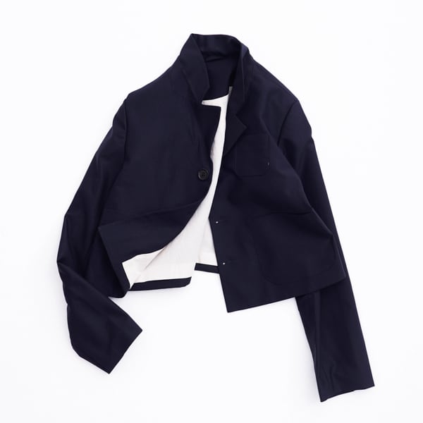 凛としたネイビーが印象的なWOKERKERが生み出すクロップドジャケット
