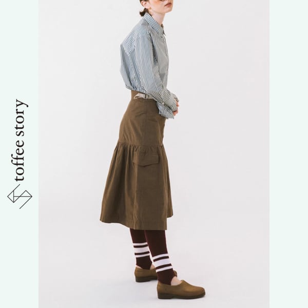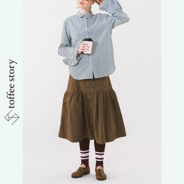 ストライプシャツと合わせればクラシカルに、シンプルなニットとなら日常に溶け込む優雅な装いに。日々の風景を物語へと変える、大人のためのスカートです。