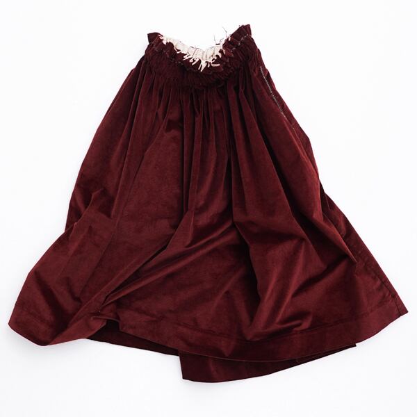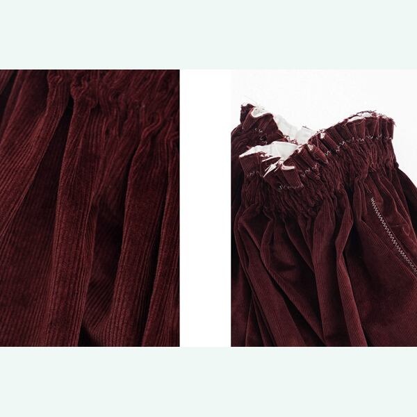 木の実のような深いボルドーブラウンが秋の情景を映す、コーデュロイスカート