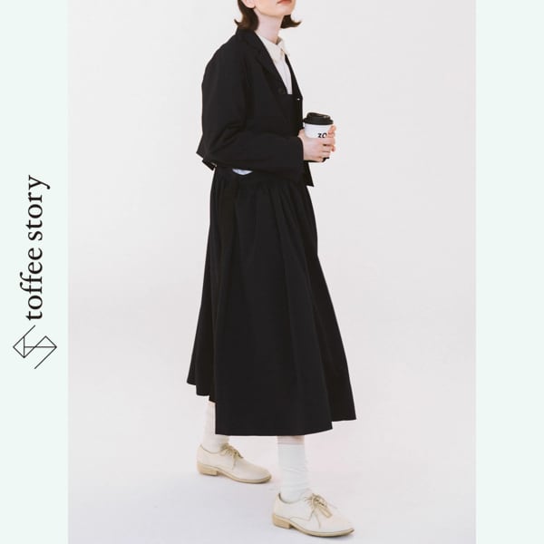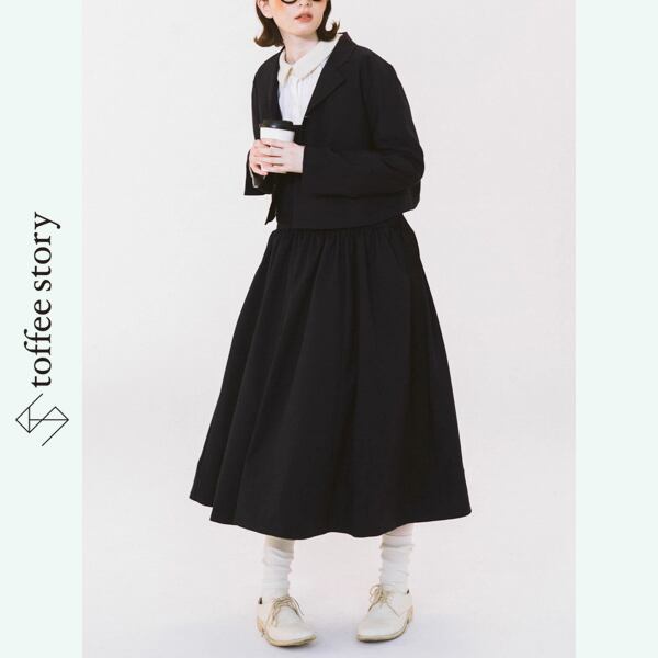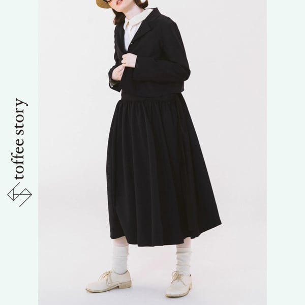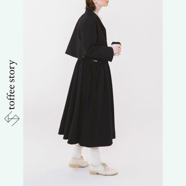 歩くたびに柔らかく揺れるフレアは、古い映画のワンシーンを思わせる静かな美しさ